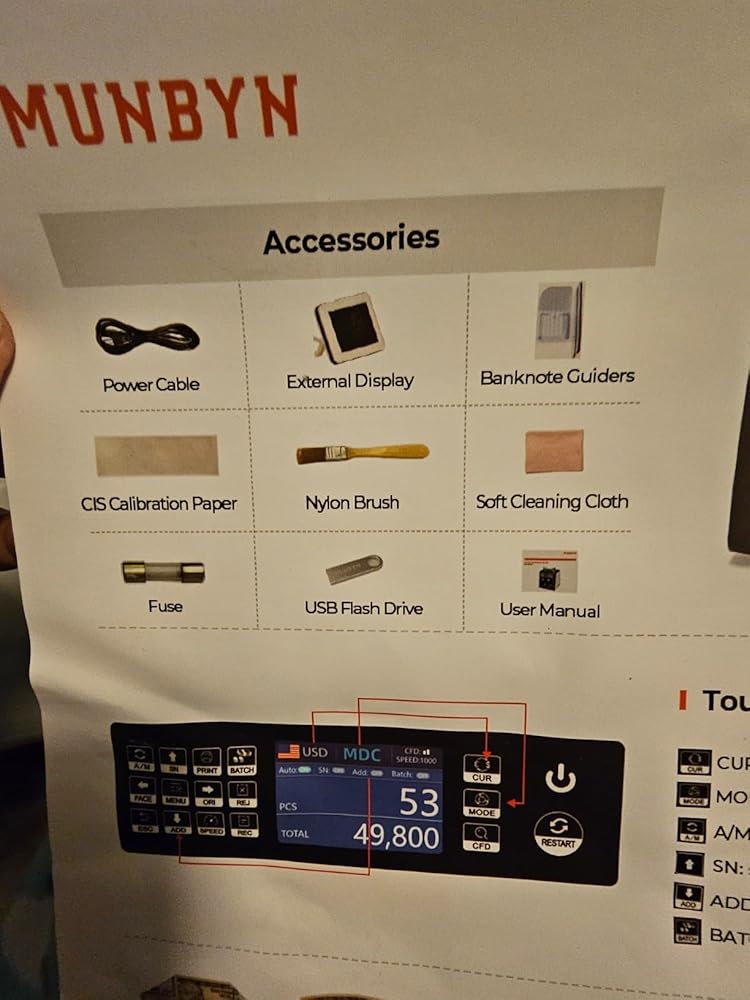 I don��t usually leave reviews, but the Munbyn IMC08 Counting Machine deserves a standing ovation. As a business owner who handles a high volume of cash daily, I needed something that could keep up with the pace. This machine absolutely delivers.Speed & Accuracy: It counts stacks of bills in seconds, and I��ve tested it repeatedly. 100% accurate every time. No more wasting time double-counting by hand or worrying about human error.Counterfeit Detection: The UV, MG, and IR detection gives me peace of mind. It caught a fake $20 the very first week I used it. That feature alone probably paid for the machine.User-Friendly: Plug it in, load your cash, press a button, and boom! done. The interface is super simple, and the display is bright and easy to read.Batch & Add Functions: I love that I can set custom batch amounts for tills or deposits. The add mode is also clutch when counting multiple stacks.Design & Durability: Solid build, compact enough for my desk, and surprisingly quiet. It doesn��t sound like a jet engine, which is a plus when customers are around.Bottom line: If you��re handling cash in any kind of serious volume. retail, restaurants, vending, events, etc. this machine is a game-changer. I��ve tried other brands in the past, and this one blows them out of the water in both performance and value.