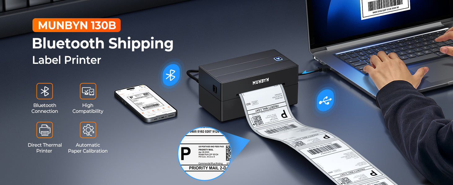 • Dual compatibility with Bluetooth & wired connections: -Bluetooth for Mobile Phone: MUNBYN RealWriter 130 Bluetooth label printer, supports Bluetooth connection for iOS ,Android, Windows systems, and prints labels anytime, anywhere. -USB cable for macOS, Windows (Windows can also connect via Bluetooth) system computers. (Note that Mac and Desktop only work with a USB connection).
