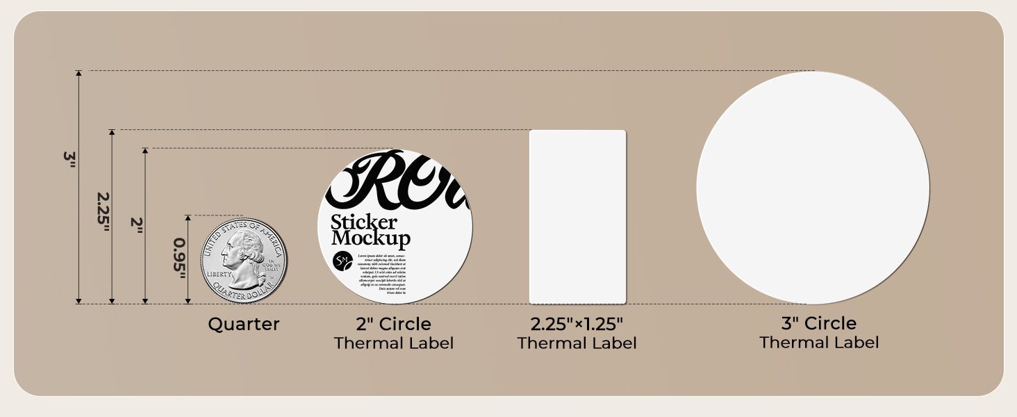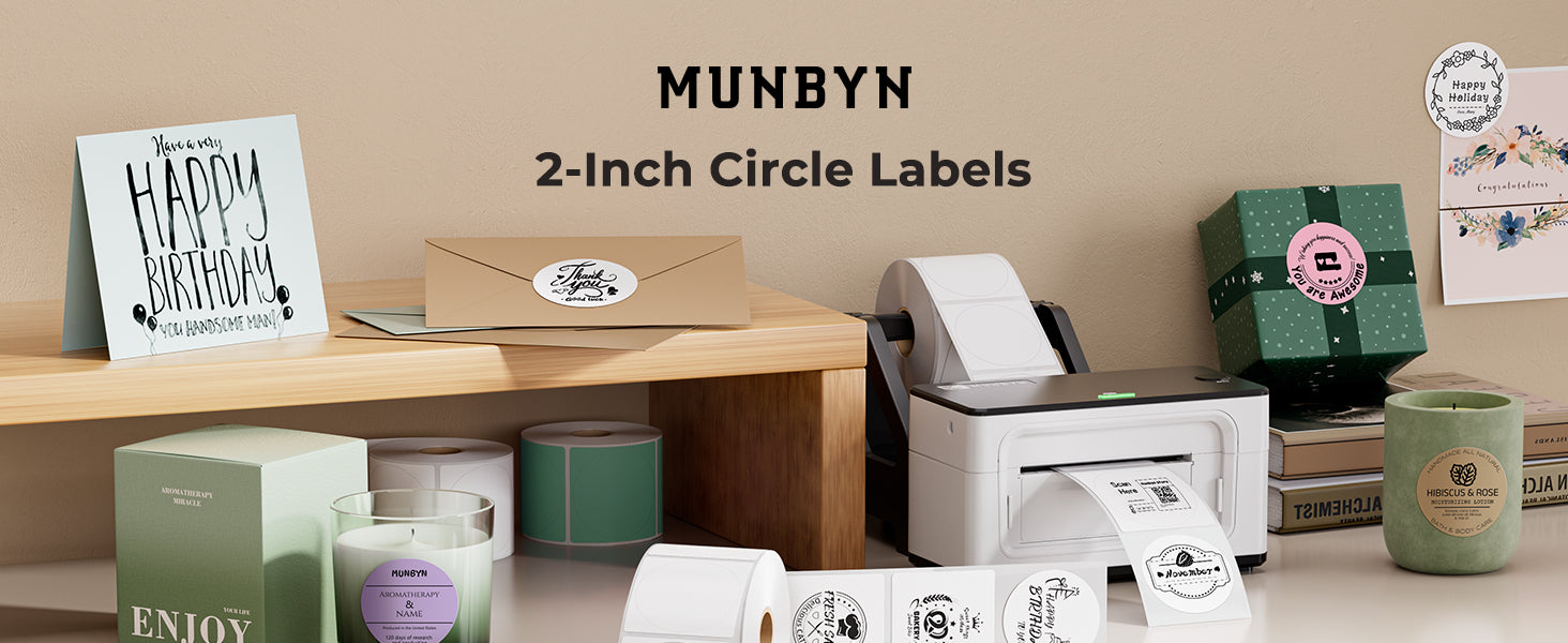 -Munbyn Generic Circle Series Labels (GR): Featuring 750 labels per roll (2" circle, 1 roll, white), these circle label stickers require no ink, toner, or ribbons. With a 0.98" paper tube diameter and a 3.38" paper roll diameter.