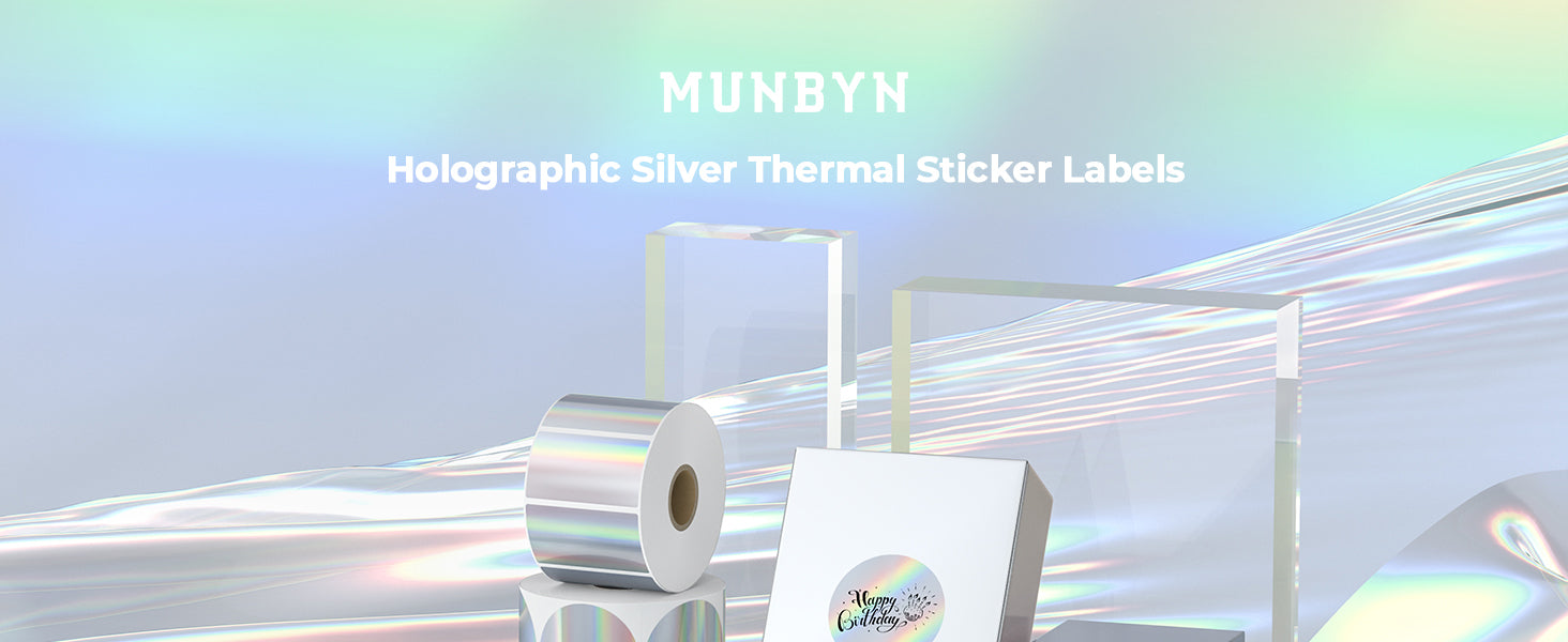 MUNBYN Holographic Silver Thermal Sticker Labels