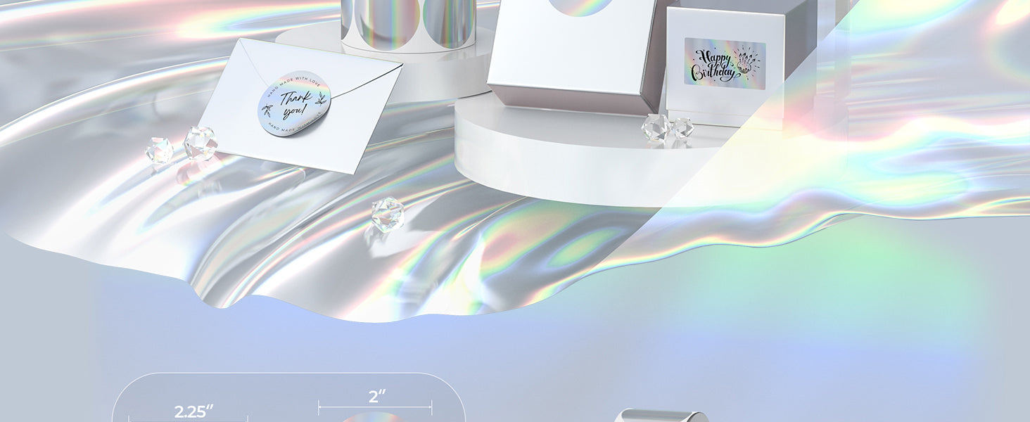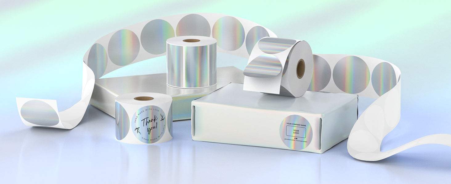 Logo stickers, thank-you labels, QR codes, product info labels.