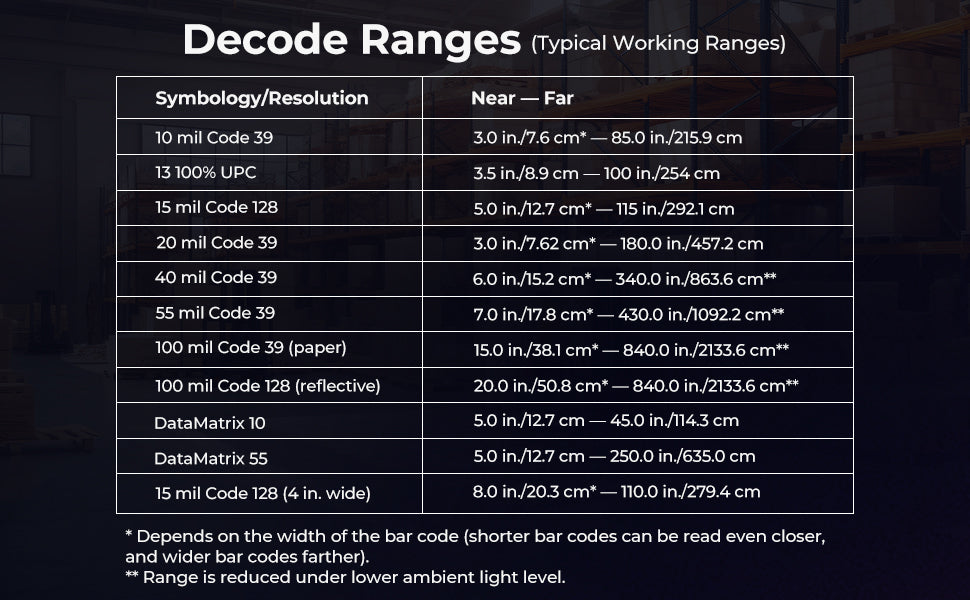 Drop Specifications | Multiple 1.8 m / 5.9 ft. drops (at least 20 times) to the concrete across the operating temperature range |