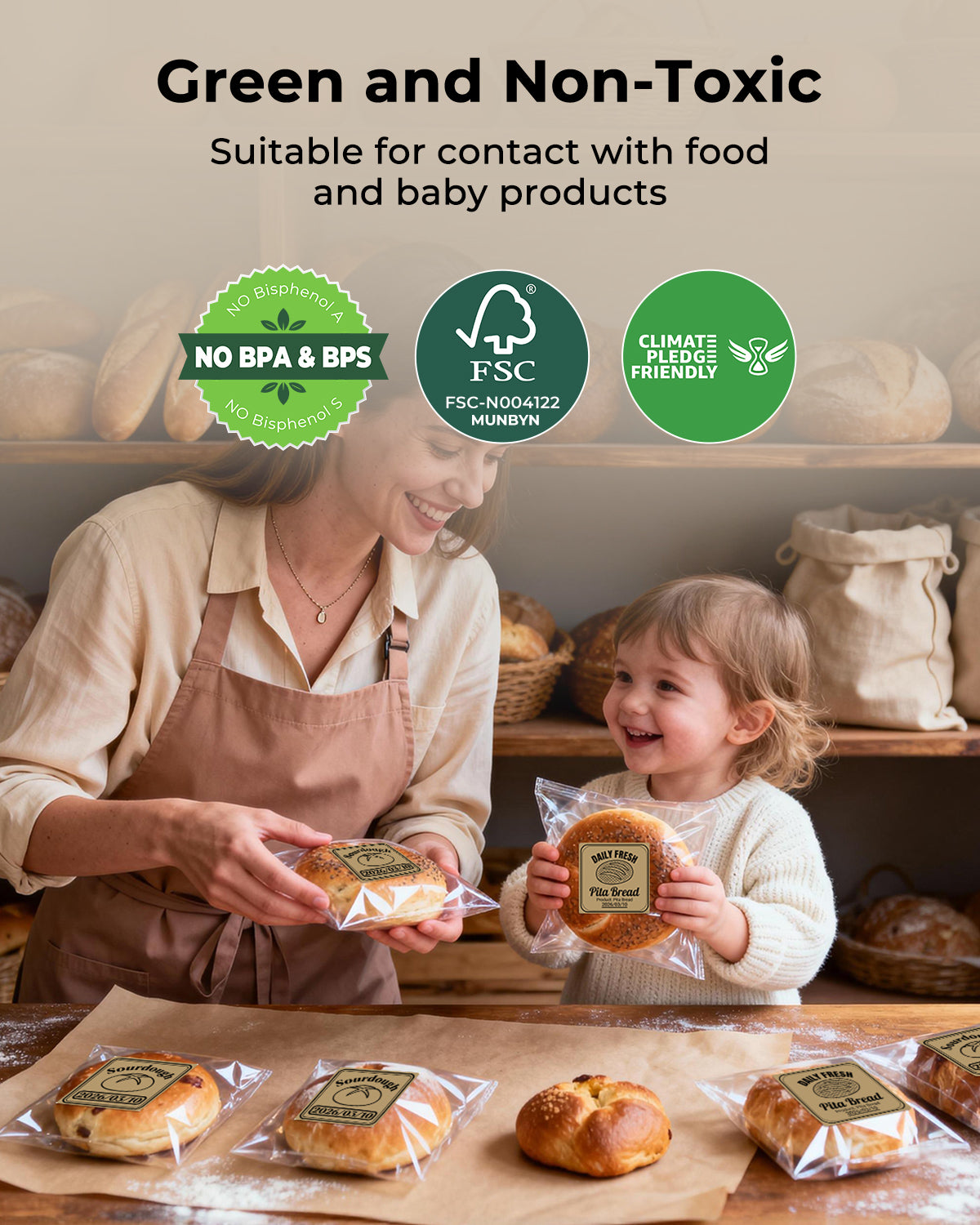 • No BPA and BPS: Tested to contain no harmful chemicals like BPA and BPS, ensuring that they are non-polluting