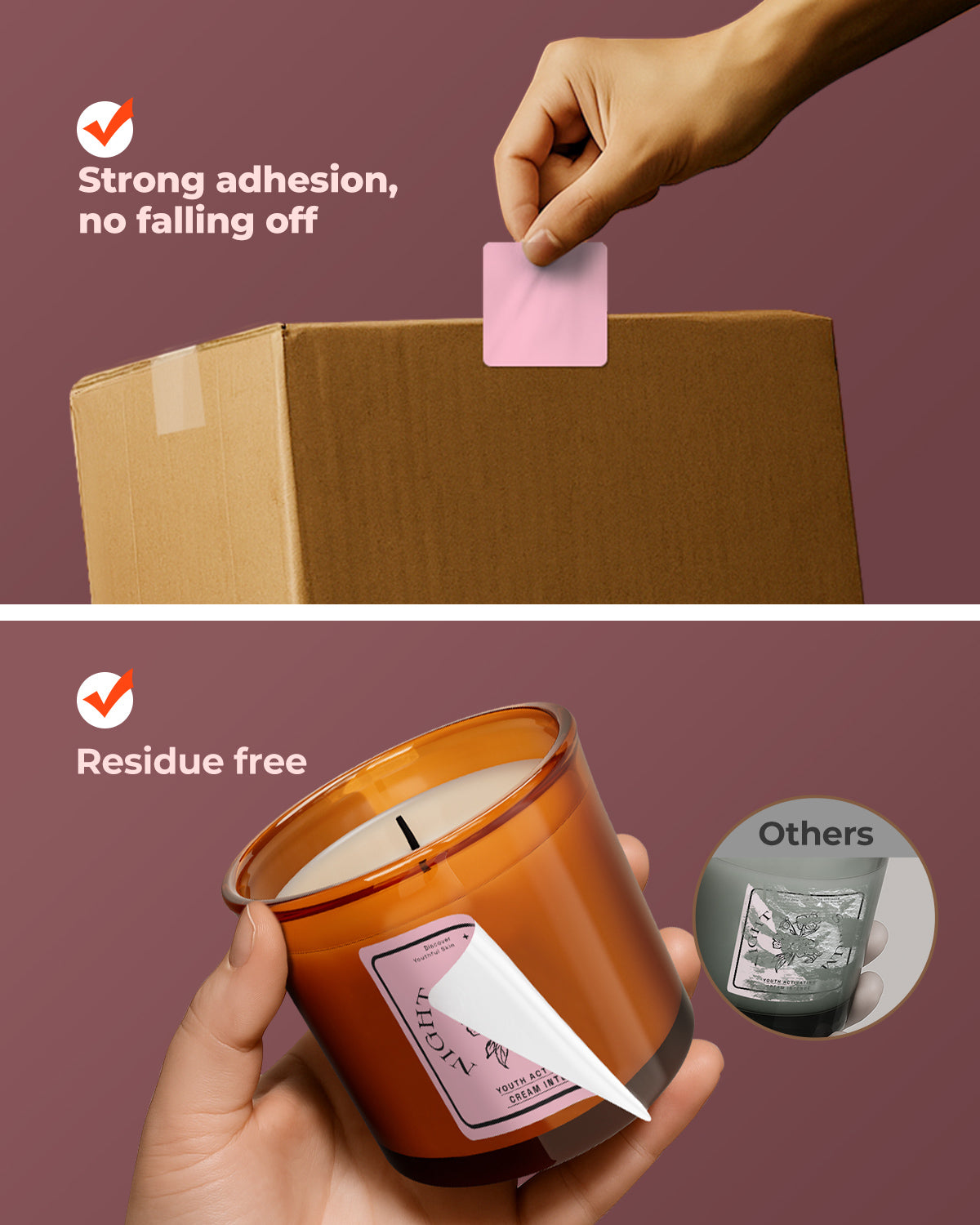 Logo stickers, thank-you labels, QR codes, product info labels.