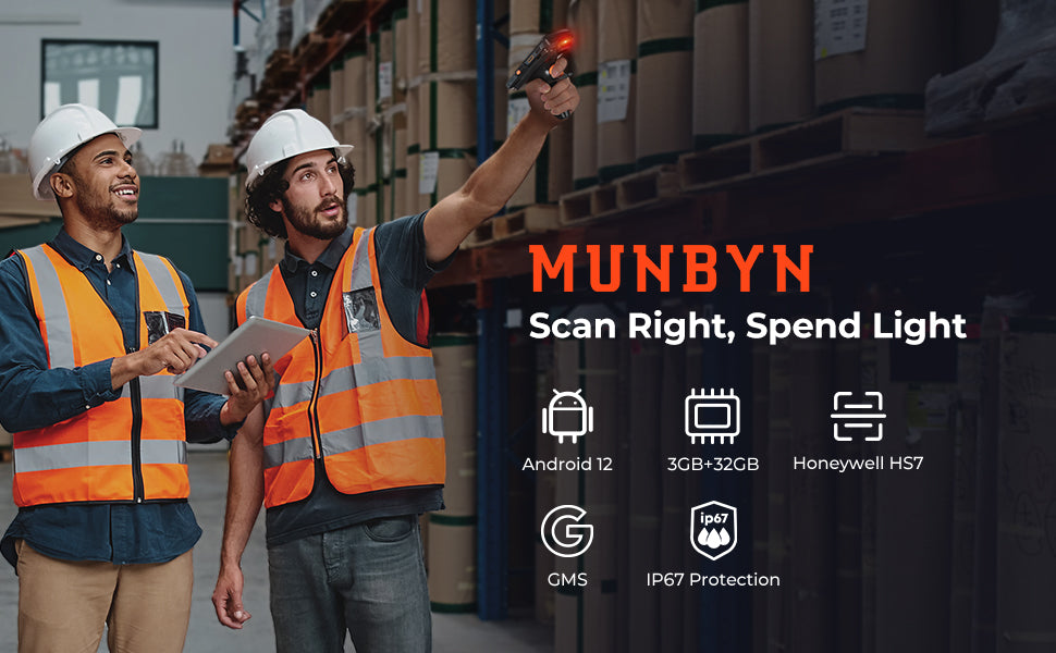 - Built to withstand harsh environments, the MUNBYN android barcode scanner has an IP67 rating for dust and water resistance, is 1.5m (4.9ft) drop tested, and features a magnesium alloy internal structure for maximum durability.