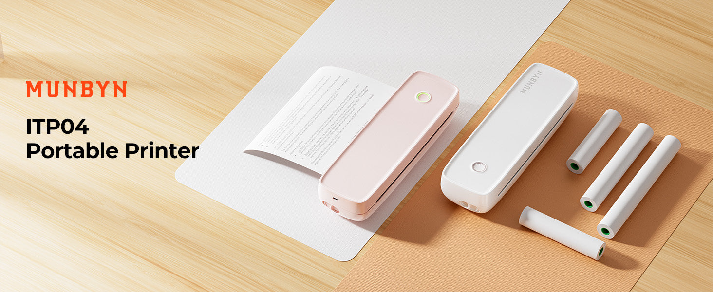 MUNBYN ITP04 Inkless A4 Portable Wireless Printer - Pink
