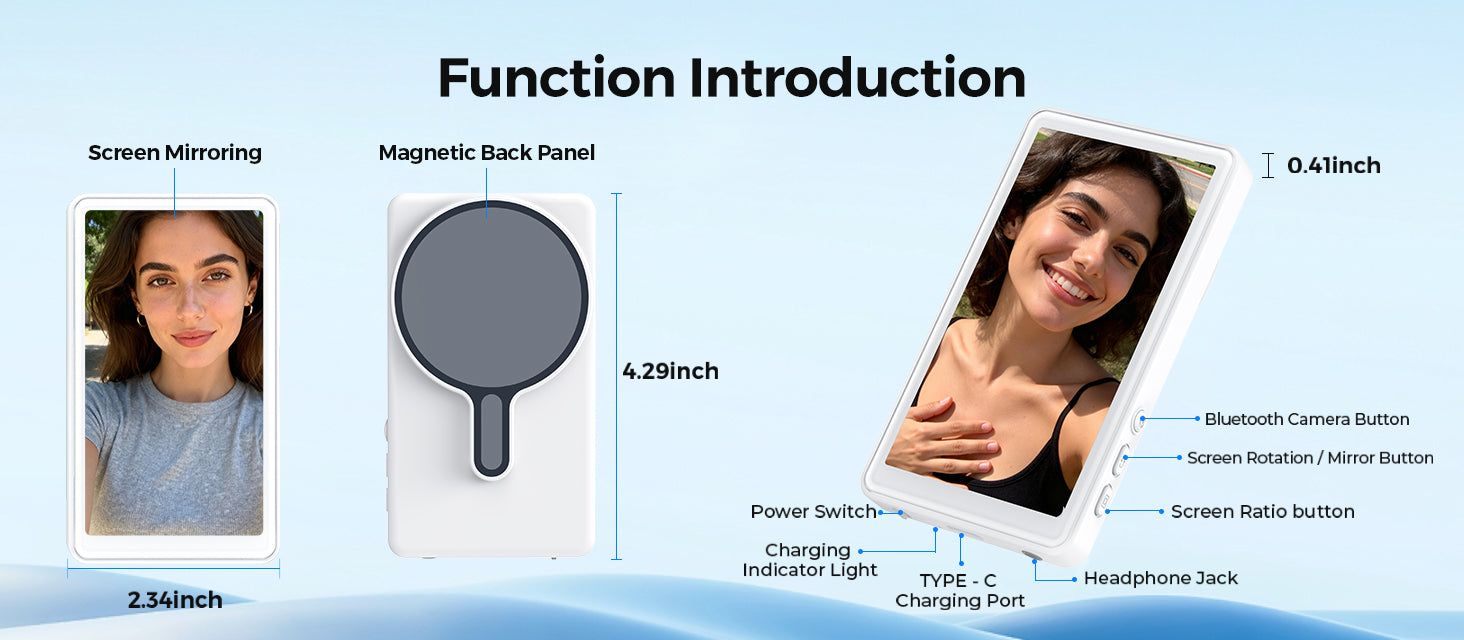 MUNBYN Magnetic Wireless Selfie Monitor with Bluetooth Remote