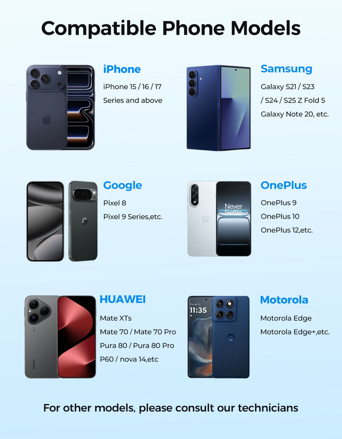 - 【Wide Device Compatibility】Fully compatible with mainstream iPhone 15/16 series, Samsung Galaxy S21 to S25/Z Fold/Note series, and Android devices (please contact technical support for specific models). Recording retains all your phone's audio functions, ensuring calls, music, and notifications remain unaffected by video output