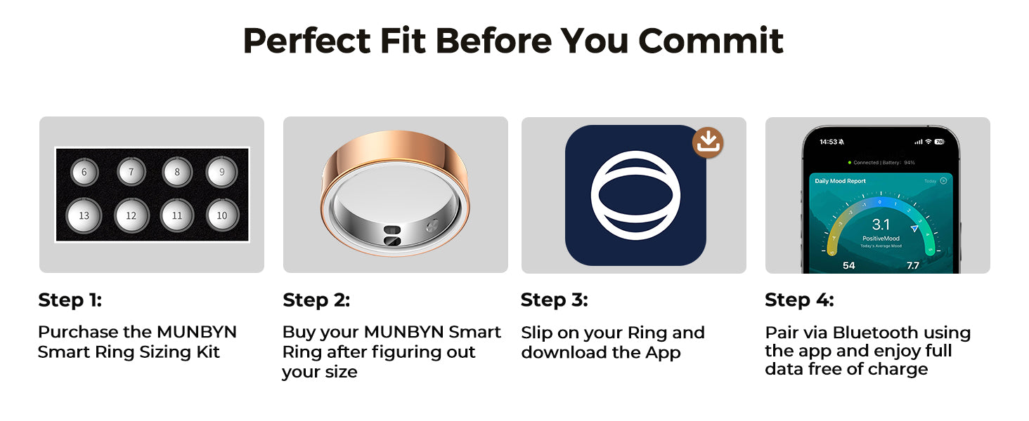- Size Before You Buy: Use the MUNBYN sizing chart before purchasing the Smart Health Ring to ensure a precise and comfortable fit, as our sizing standard is different due to built-in sensors
