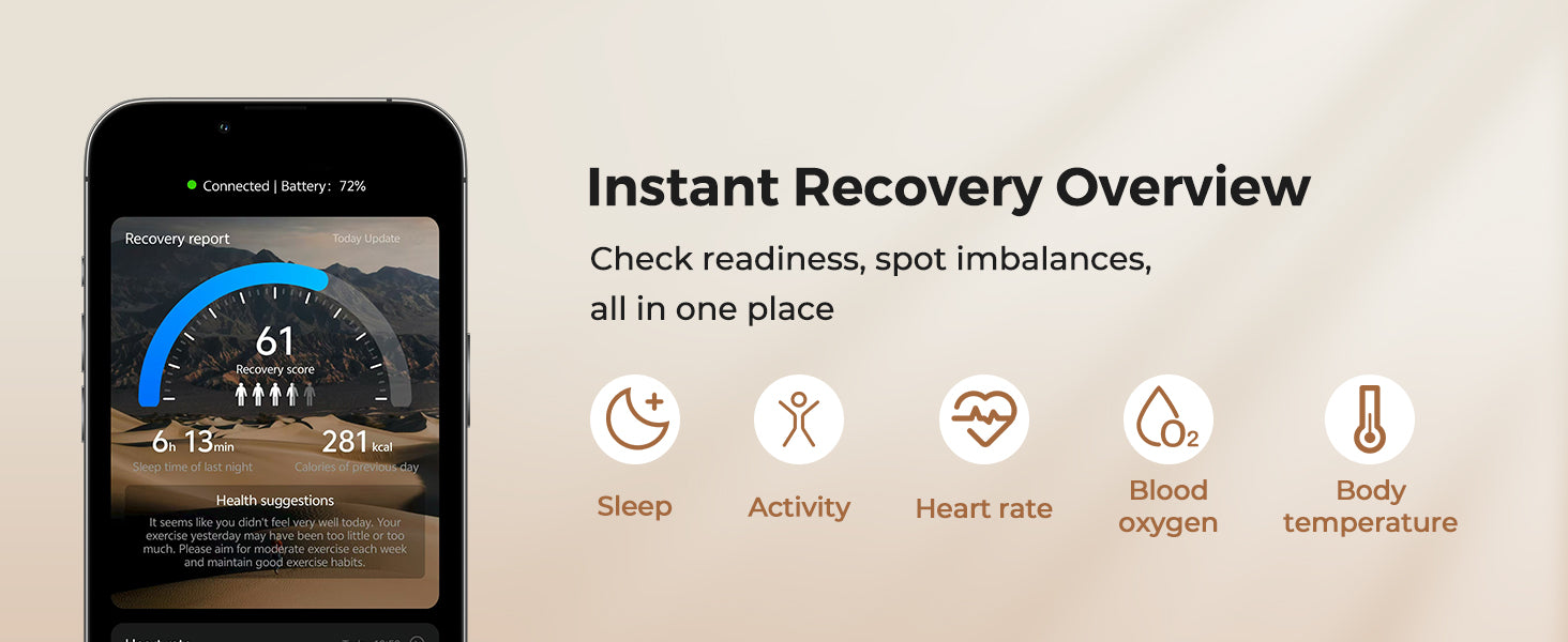 - 4-in-1 Mental Health Tracker: Monitors your mood, stress, fatigue level, and emotion, enabling you to understand your mental health status clearly and make timely adjustments