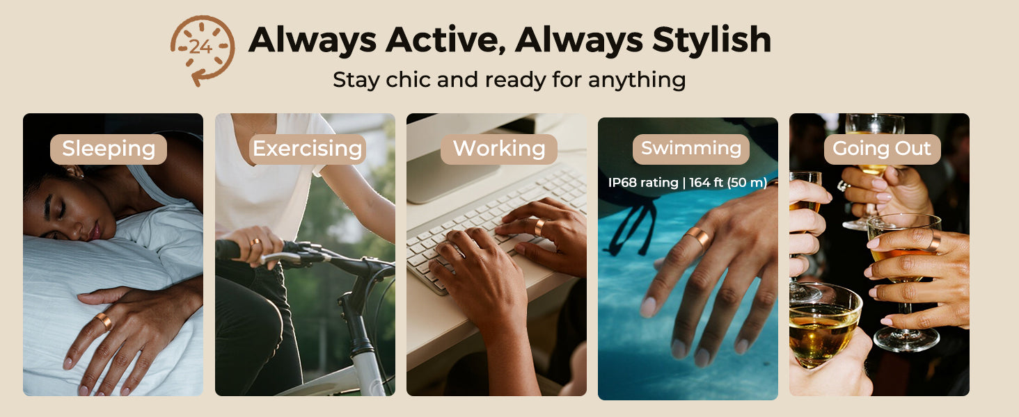 - Wear All Day & Night: Ultra-thin, stylish 2 mm smart ring offers all-around comfort and convenience in activities like sleeping, jogging, working, exercising, with a durable and waterproof design (IP68/5ATM)