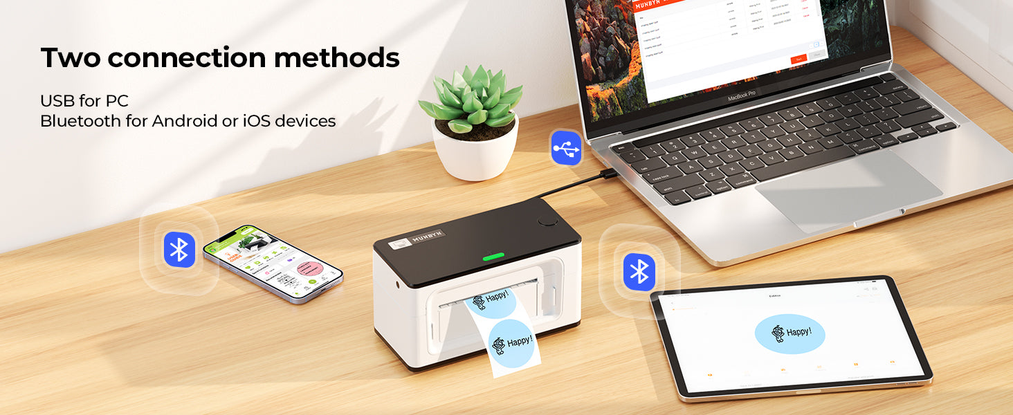 MUNBYN label printers work with Windows, Mac, Chromebook, iOS, Android, and most tablets.